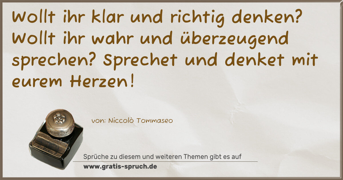 Wollt ihr klar und richtig denken? Wollt ihr wahr und überzeugend sprechen? Sprechet und denket mit eurem Herzen!