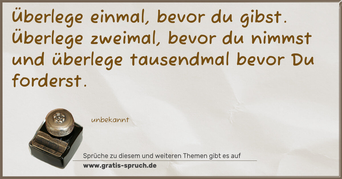 Überlege einmal, bevor du gibst. Überlege zweimal, bevor du nimmst und überlege tausendmal bevor Du forderst.