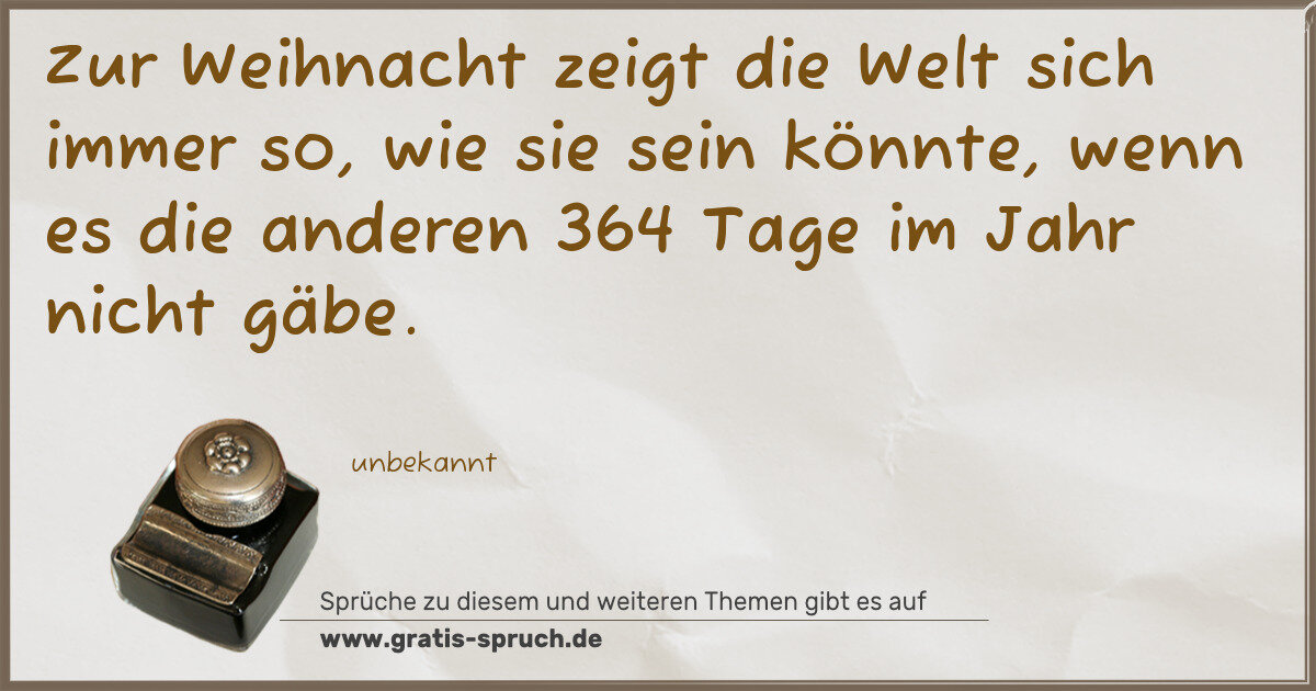 Zur Weihnacht zeigt die Welt sich immer so, wie sie sein könnte, wenn es die anderen 364 Tage im Jahr nicht gäbe.