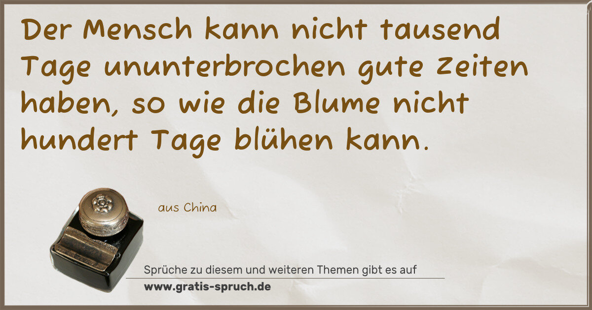 Der Mensch kann nicht tausend Tage ununterbrochen gute Zeiten haben, so wie die Blume nicht hundert Tage blühen kann.