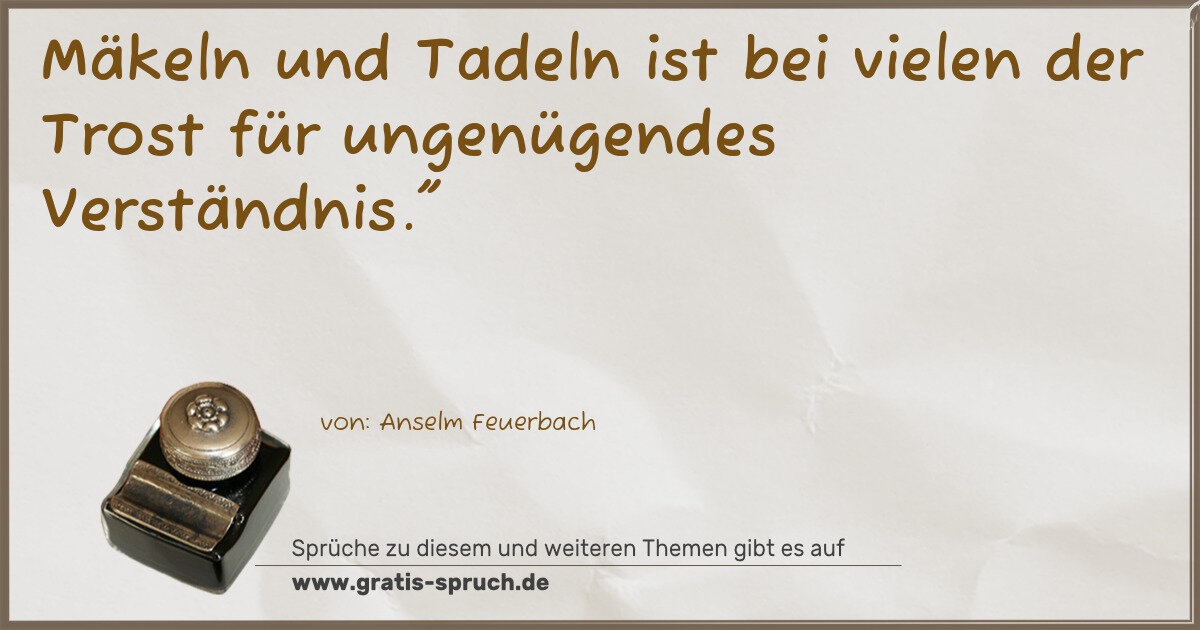 Mäkeln und Tadeln ist bei vielen der Trost für ungenügendes Verständnis."