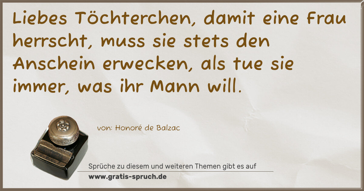 Liebes Töchterchen, damit eine Frau herrscht, muss sie stets den Anschein erwecken, als tue sie immer, was ihr Mann will.