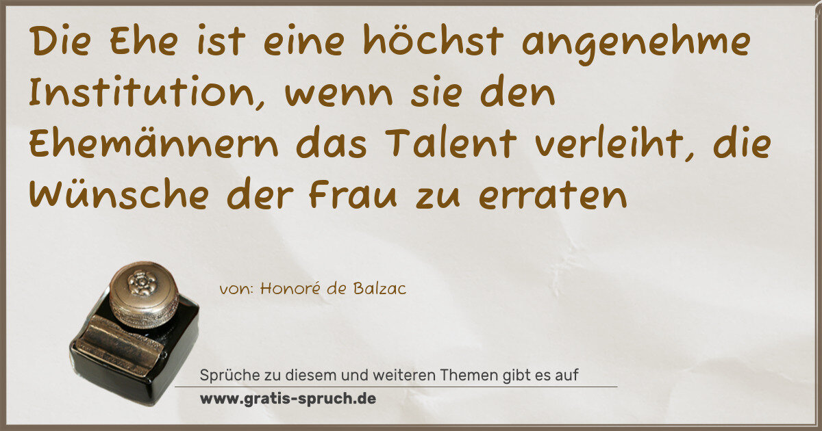 Die Ehe ist eine höchst angenehme Institution, wenn sie den Ehemännern das Talent verleiht, die Wünsche der Frau zu erraten