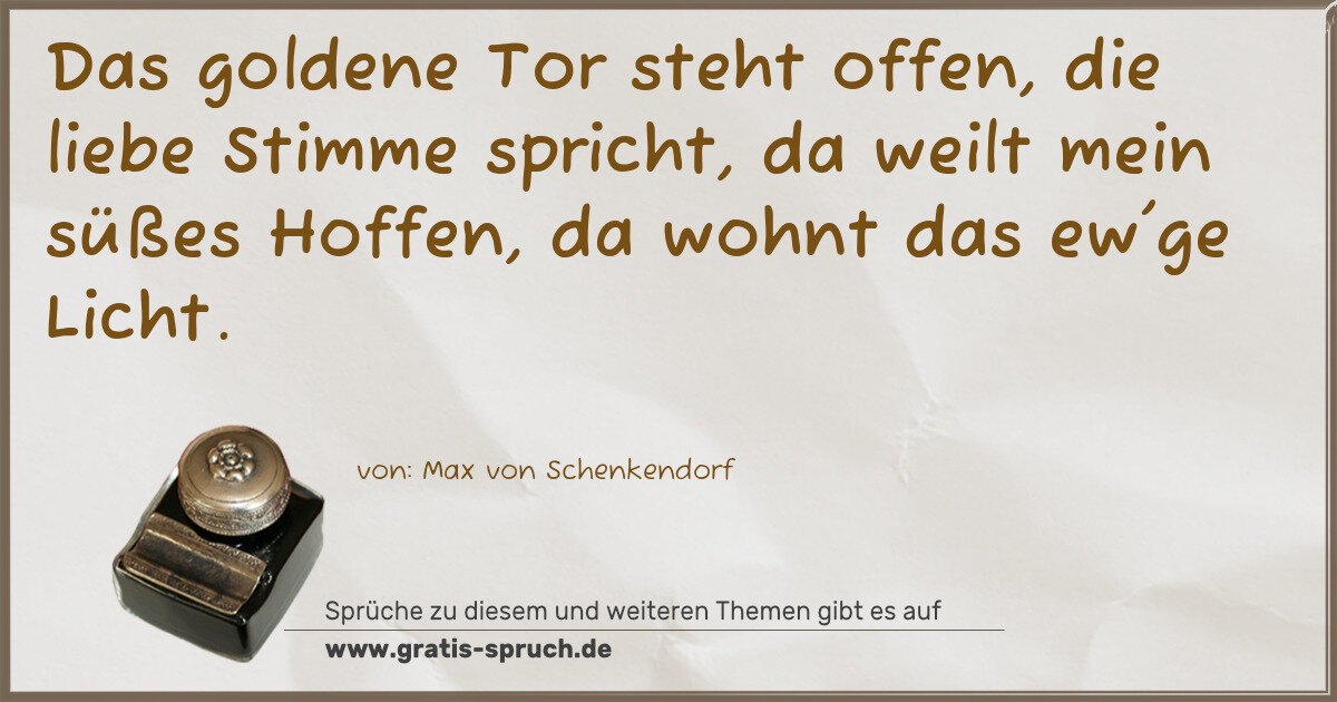 Das goldene Tor steht offen, die liebe Stimme spricht, da weilt mein süßes Hoffen, da wohnt das ew'ge Licht.