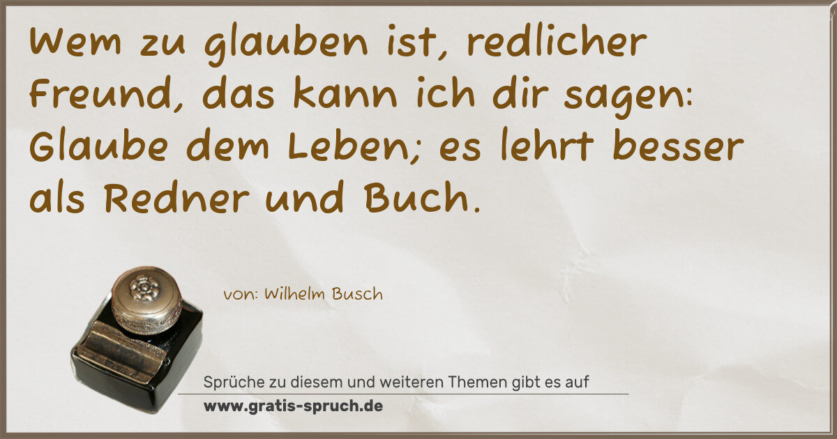 Wem zu glauben ist, redlicher Freund, das kann ich dir sagen: Glaube dem Leben; es lehrt besser als Redner und Buch.