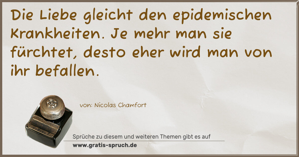 Die Liebe gleicht den epidemischen Krankheiten. Je mehr man sie fürchtet, desto eher wird man von ihr befallen.