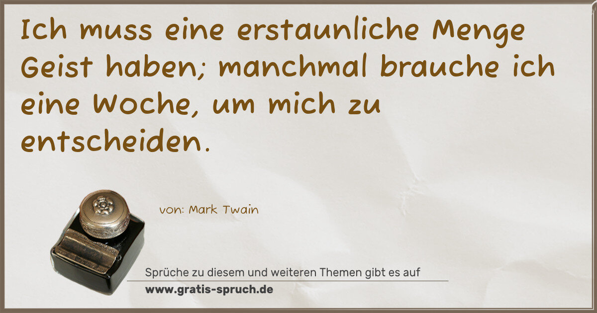 Ich muss eine erstaunliche Menge Geist haben; manchmal brauche ich eine Woche, um mich zu entscheiden.