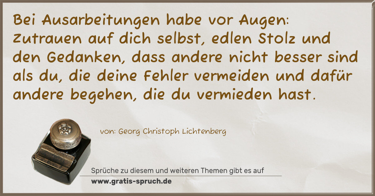Zutrauen auf dich selbst, edlen Stolz und den Gedanken, dass andere nicht besser sind als du, die deine Fehler vermeiden und dafür andere begehen, die du vermieden hast.