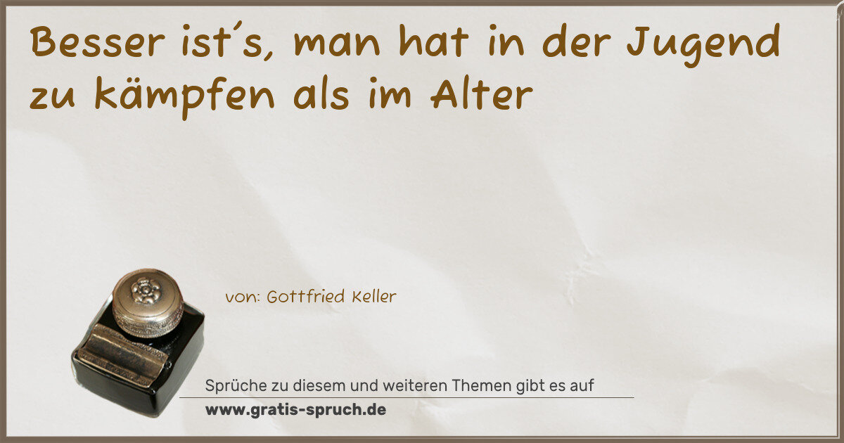 Besser ist's, man hat in der Jugend zu kämpfen als im Alter