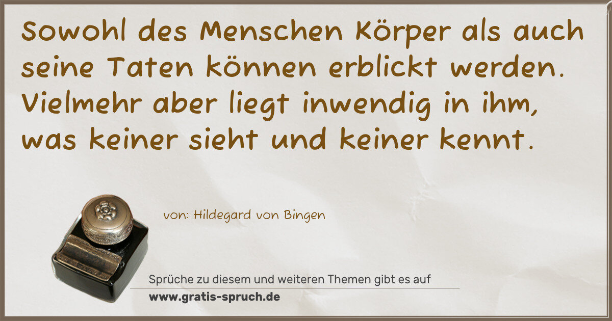 »Sowohl des Menschen Körper als auch seine Taten können erblickt werden. Vielmehr aber liegt inwendig in ihm, was keiner sieht und keiner kennt.