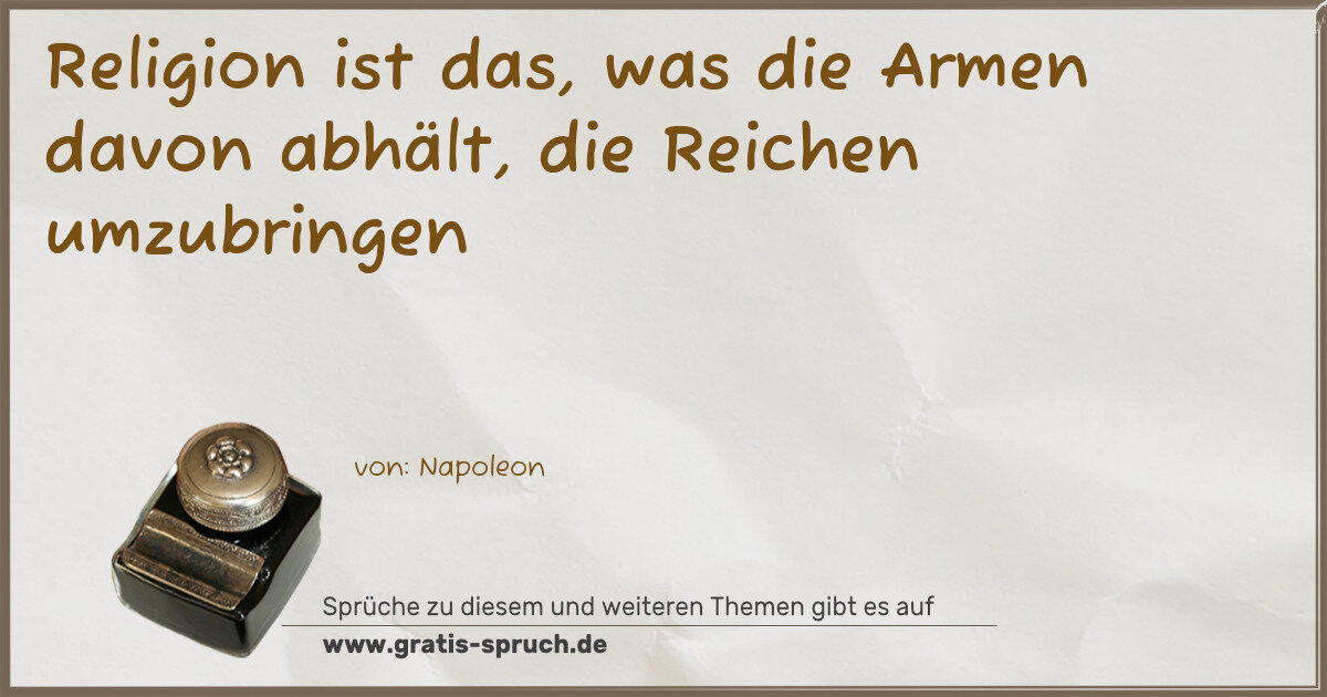 Religion ist das, was die Armen davon abhält, die Reichen umzubringen