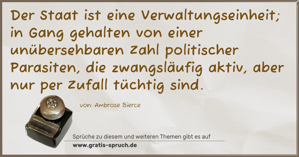 »Der Staat ist eine Verwaltungseinheit; in Gang gehalten von einer unübersehbaren Zahl politischer Parasiten, die zwangsläufig aktiv, aber nur per Zufall tüchtig sind.