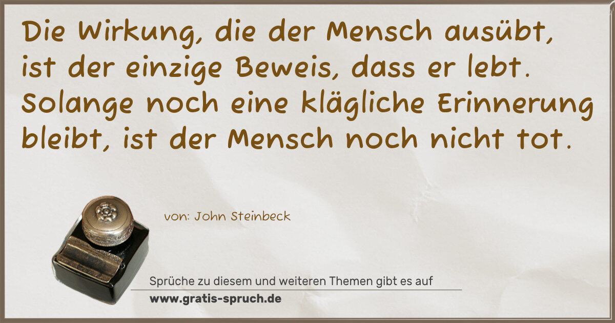 »Die Wirkung, die der Mensch ausübt, ist der einzige Beweis, dass er lebt. Solange noch eine klägliche Erinnerung bleibt, ist der Mensch noch nicht tot.