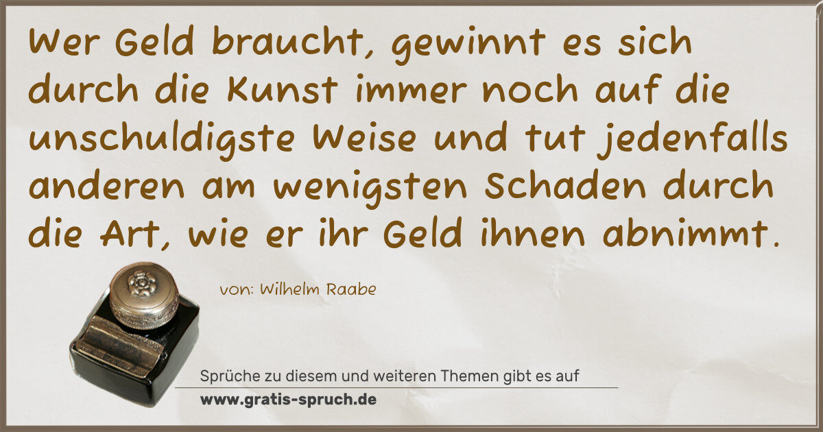 »Wer Geld braucht, gewinnt es sich durch die Kunst immer noch auf die unschuldigste Weise und tut jedenfalls anderen am wenigsten Schaden durch die Art, wie er ihr Geld ihnen abnimmt.