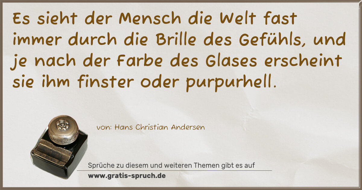 »Es sieht der Mensch die Welt fast immer durch die Brille des Gefühls, und je nach der Farbe des Glases erscheint sie ihm finster oder purpurhell.