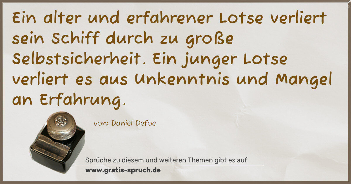 »Ein alter und erfahrener Lotse verliert sein Schiff durch zu große Selbstsicherheit. Ein junger Lotse verliert es aus Unkenntnis und Mangel an Erfahrung.