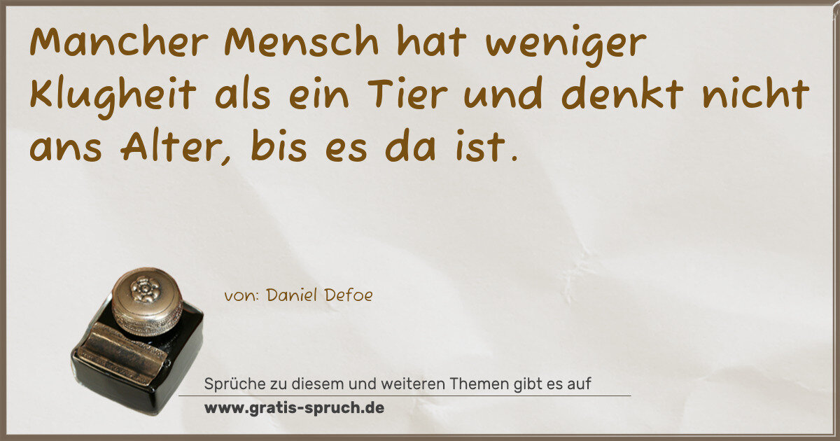 Mancher Mensch hat weniger Klugheit als ein Tier und denkt nicht ans Alter, bis es da ist.