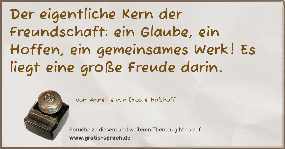 Der eigentliche Kern der Freundschaft: ein Glaube, ein Hoffen, ein gemeinsames Werk! Es liegt eine große Freude darin.