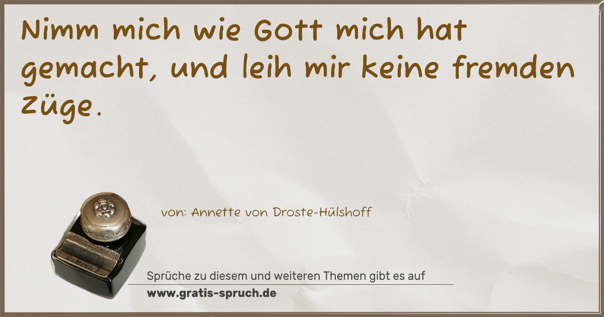 Nimm mich wie Gott mich hat gemacht, und leih mir keine fremden Züge.