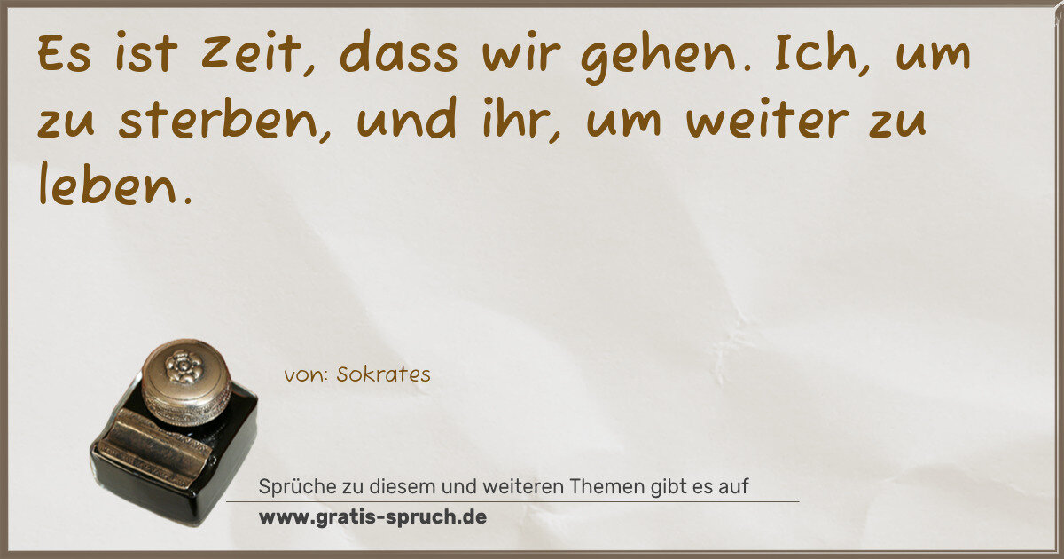 Es ist Zeit, dass wir gehen. Ich, um zu sterben, und ihr, um weiter zu leben.