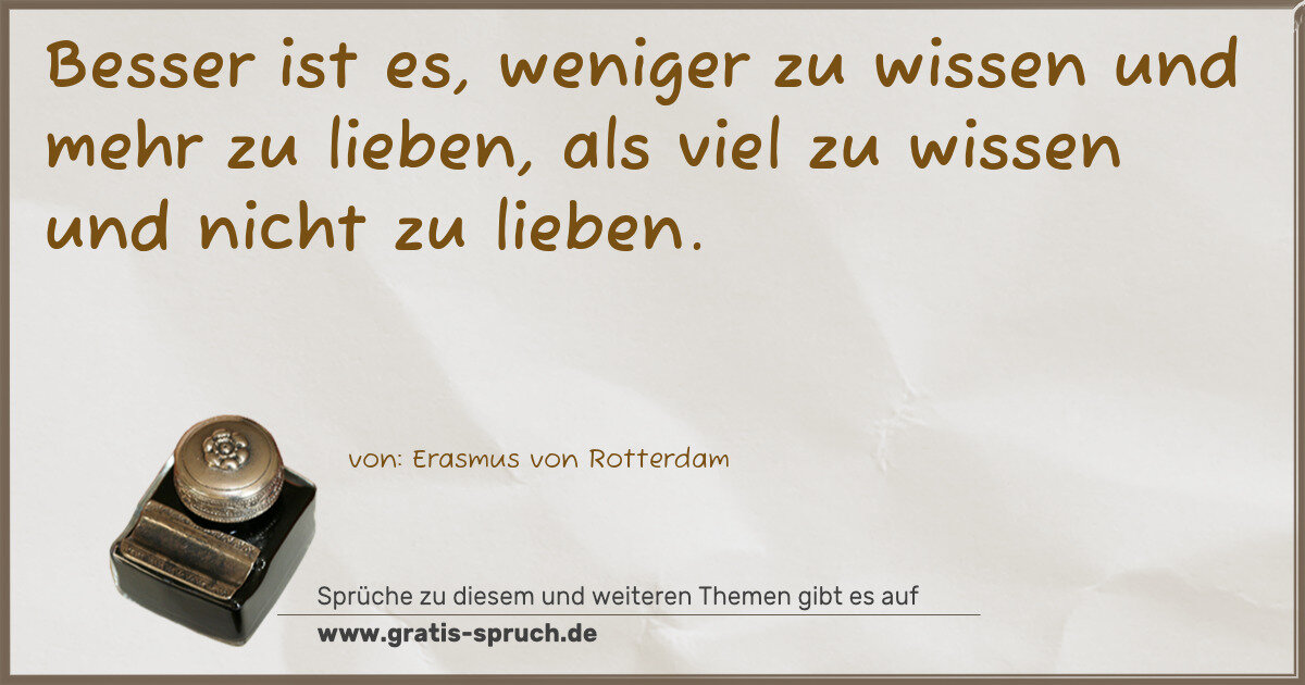 Besser ist es, weniger zu wissen und mehr zu lieben, als viel zu wissen und nicht zu lieben.
