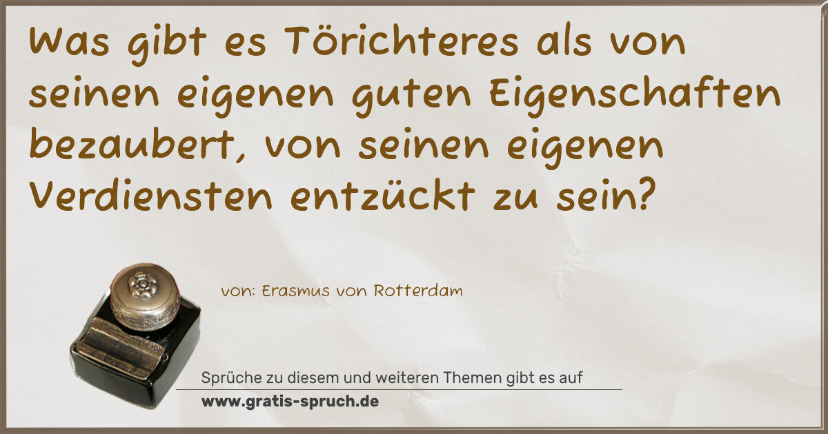 Was gibt es Törichteres als von seinen eigenen guten Eigenschaften bezaubert, von seinen eigenen Verdiensten entzückt zu sein?