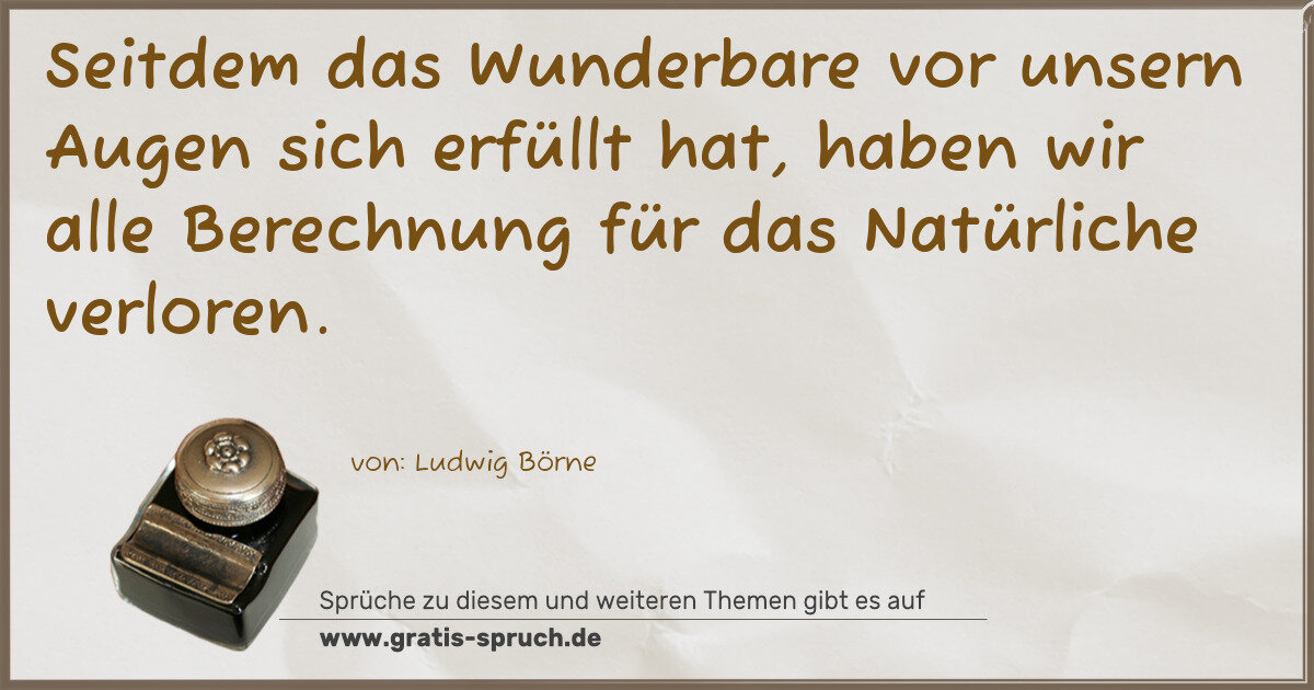 Seitdem das Wunderbare vor unsern Augen sich erfüllt hat, haben wir alle Berechnung für das Natürliche verloren.