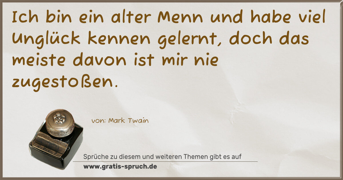 Ich bin ein alter Menn und habe viel Unglück kennen gelernt, doch das meiste davon ist mir nie zugestoßen.