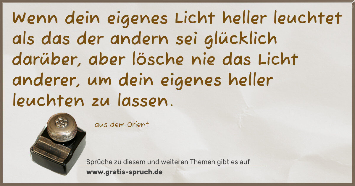 »Wenn dein eigenes Licht heller leuchtet als das der andern sei glücklich darüber, aber lösche nie das Licht anderer, um dein eigenes heller leuchten zu lassen.aus dem Orient