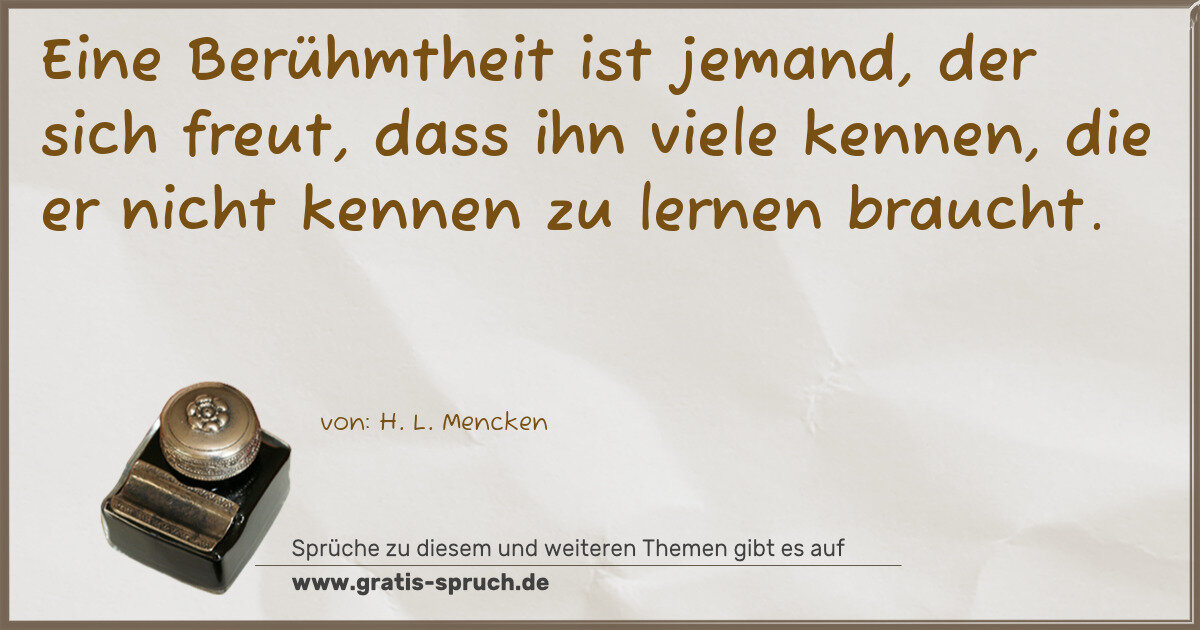 Eine Berühmtheit ist jemand, der sich freut, dass ihn viele kennen, die er nicht kennen zu lernen braucht.