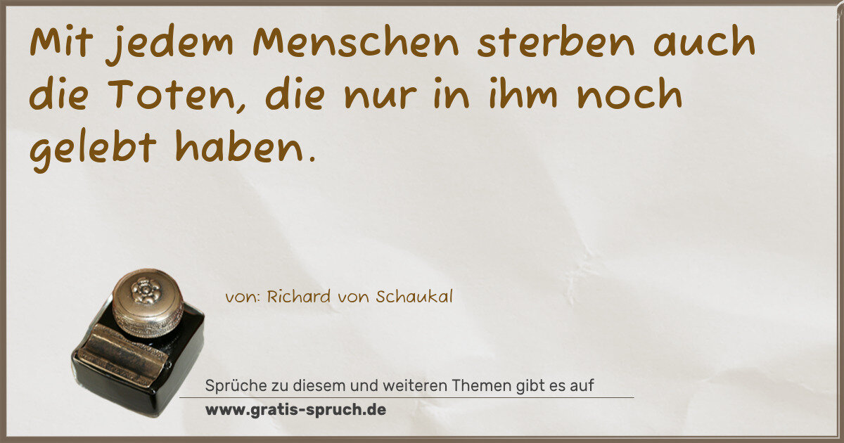 Mit jedem Menschen sterben auch die Toten, die nur in ihm noch gelebt haben.