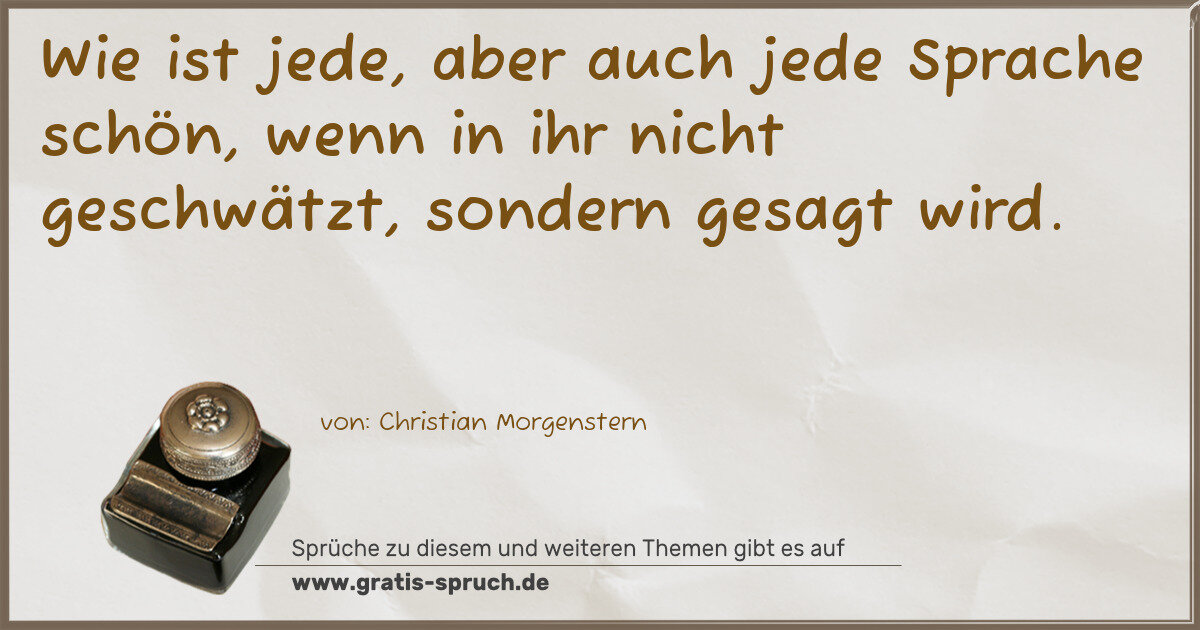 Wie ist jede, aber auch jede Sprache schön, wenn in ihr nicht geschwätzt, sondern gesagt wird.
