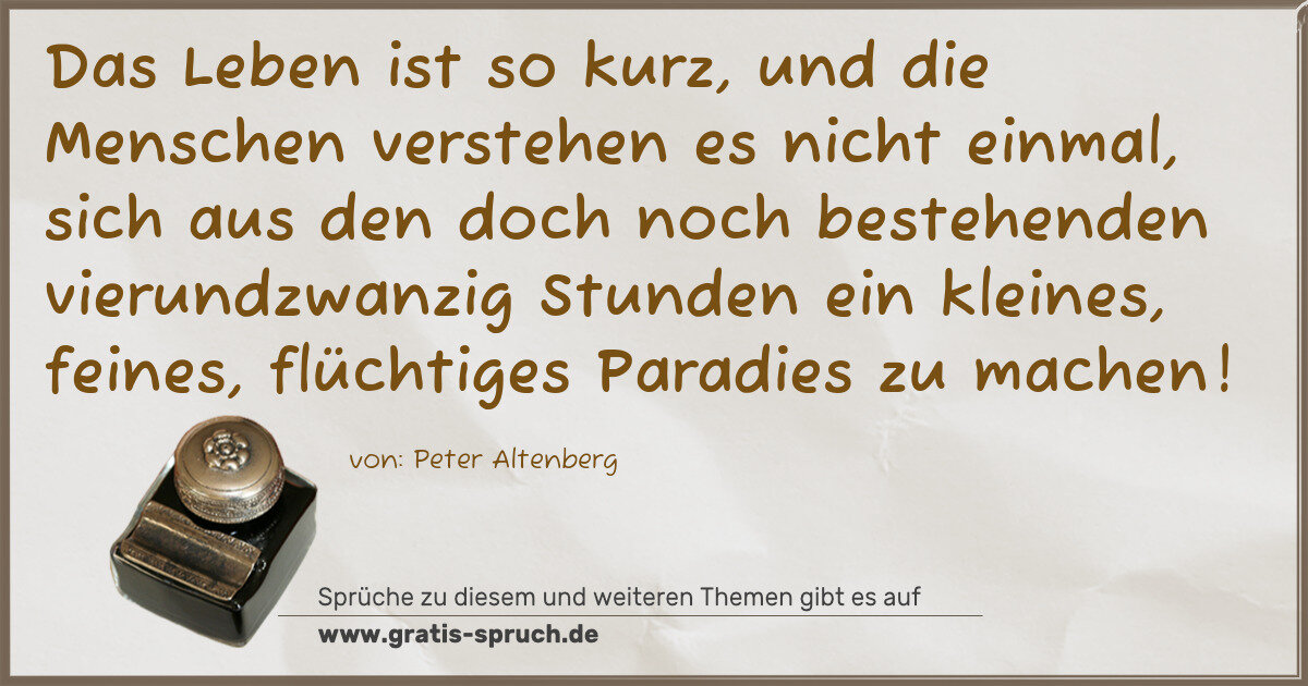 »Das Leben ist so kurz, und die Menschen verstehen es nicht einmal, sich aus den doch noch bestehenden vierundzwanzig Stunden ein kleines, feines, flüchtiges Paradies zu machen!