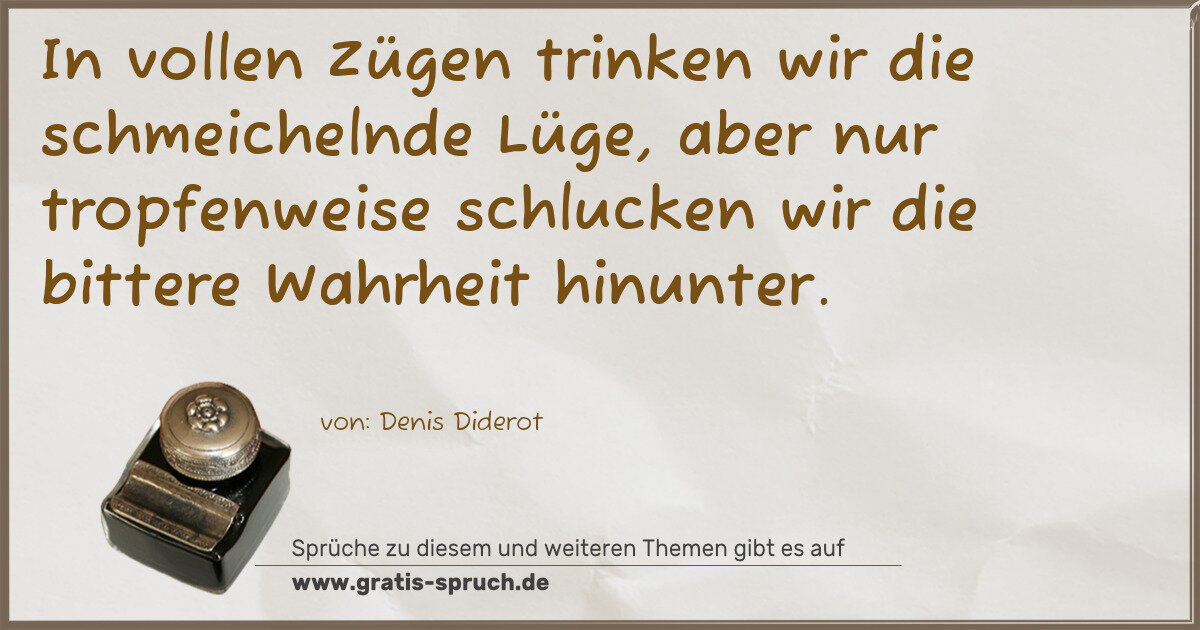In vollen Zügen trinken wir die schmeichelnde Lüge, aber nur tropfenweise schlucken wir die bittere Wahrheit hinunter.