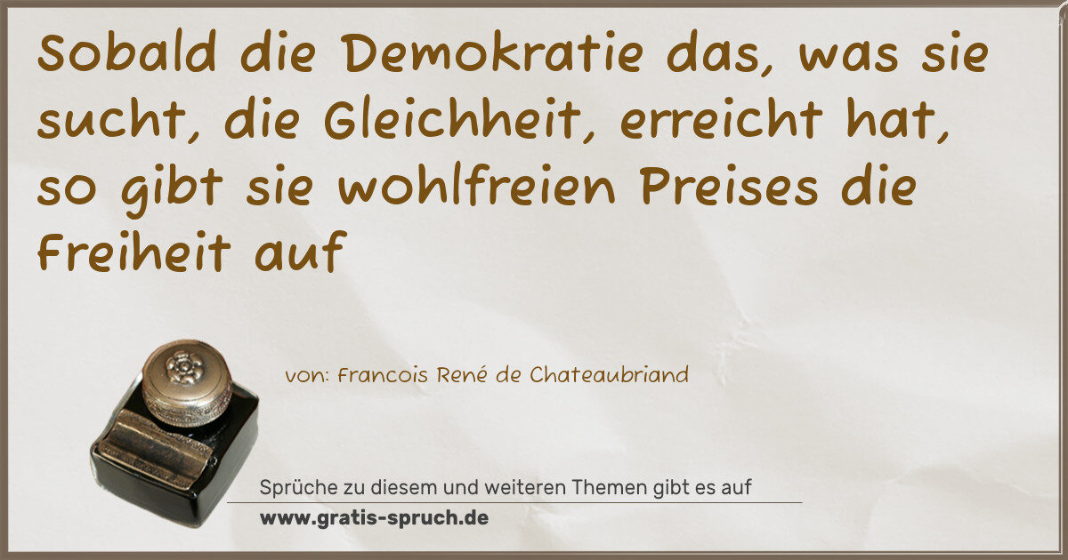 »Sobald die Demokratie das, was sie sucht, die Gleichheit, erreicht hat, so gibt sie wohlfreien Preises die Freiheit auf