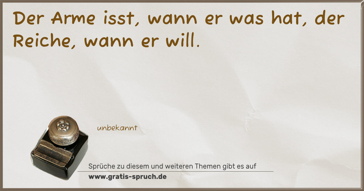 Der Arme isst, wann er was hat, der Reiche, wann er will.