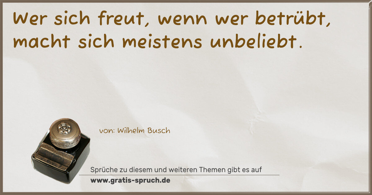Wer sich freut, wenn wer betrübt, macht sich meistens unbeliebt.