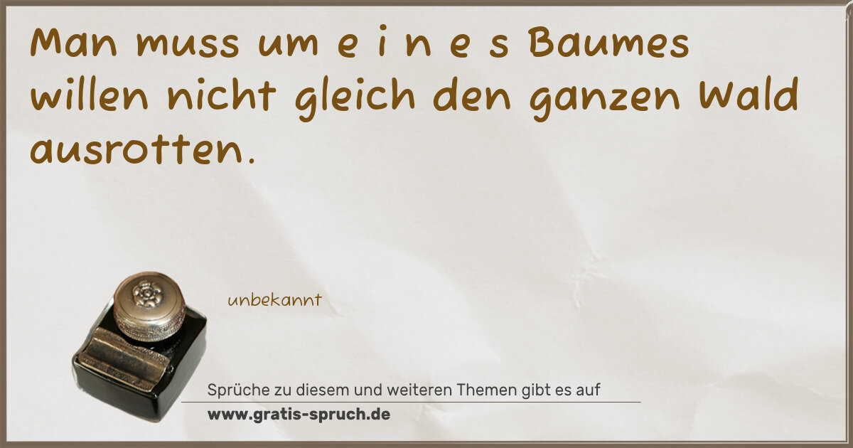 Man muss um e i n e s Baumes willen nicht gleich den ganzen Wald ausrotten.