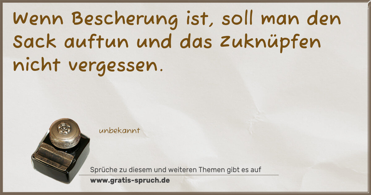 Wenn Bescherung ist, soll man den Sack auftun und das Zuknüpfen nicht vergessen.