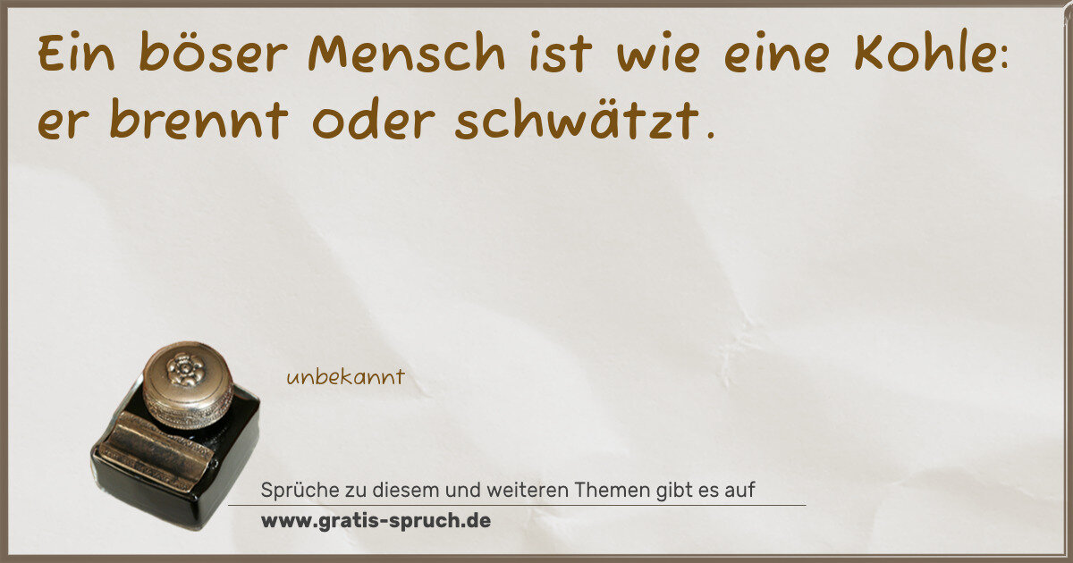 Ein böser Mensch ist wie eine Kohle: er brennt oder schwätzt.