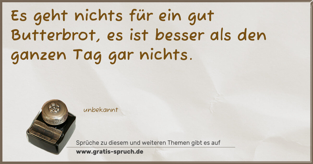 Es geht nichts für ein gut Butterbrot, es ist besser als den ganzen Tag gar nichts.