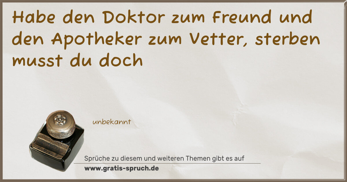 Habe den Doktor zum Freund und den Apotheker zum Vetter, sterben musst du doch