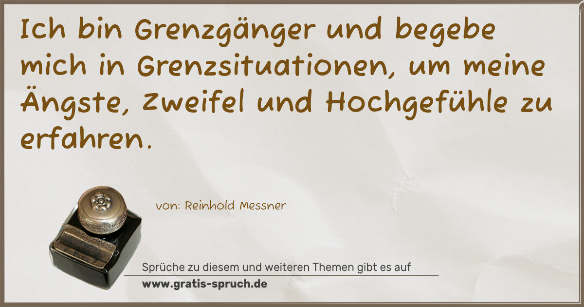 Ich bin Grenzgänger und begebe mich in Grenzsituationen, um meine Ängste, Zweifel und Hochgefühle zu erfahren.