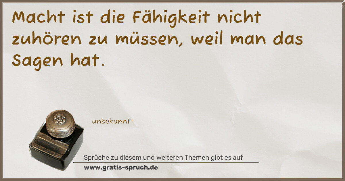 Macht ist die Fähigkeit nicht zuhören zu müssen, weil man das Sagen hat.