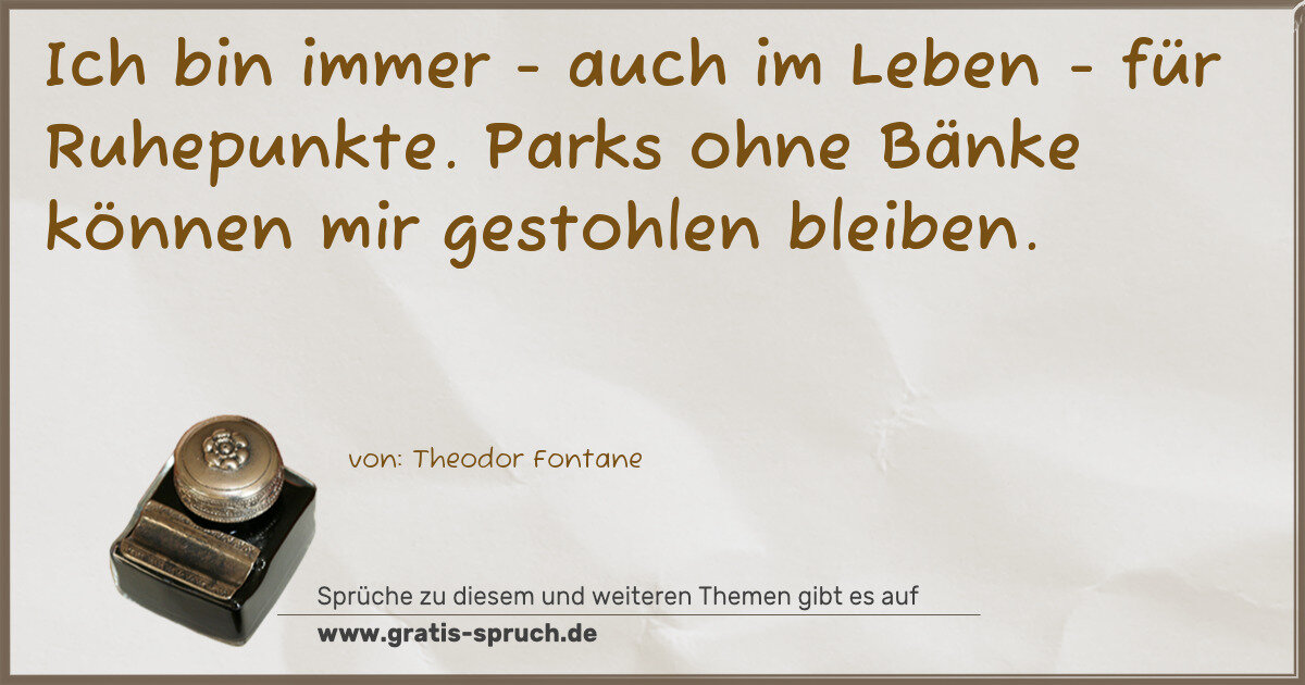 Ich bin immer - auch im Leben - für Ruhepunkte. Parks ohne Bänke können mir gestohlen bleiben.