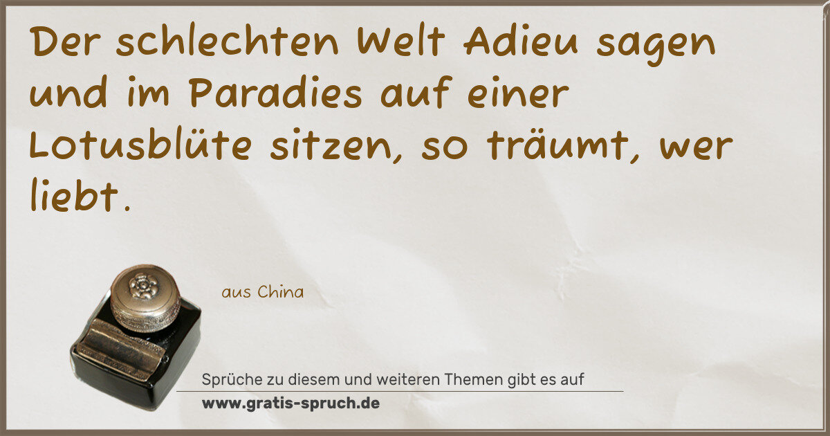 Der schlechten Welt Adieu sagen und im Paradies auf einer Lotusblüte sitzen, so träumt, wer liebt.