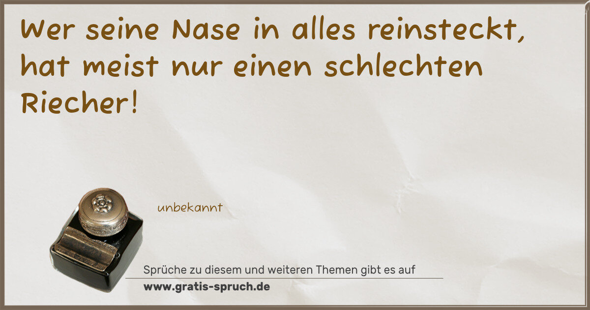 Wer seine Nase in alles reinsteckt, hat meist nur einen schlechten Riecher!