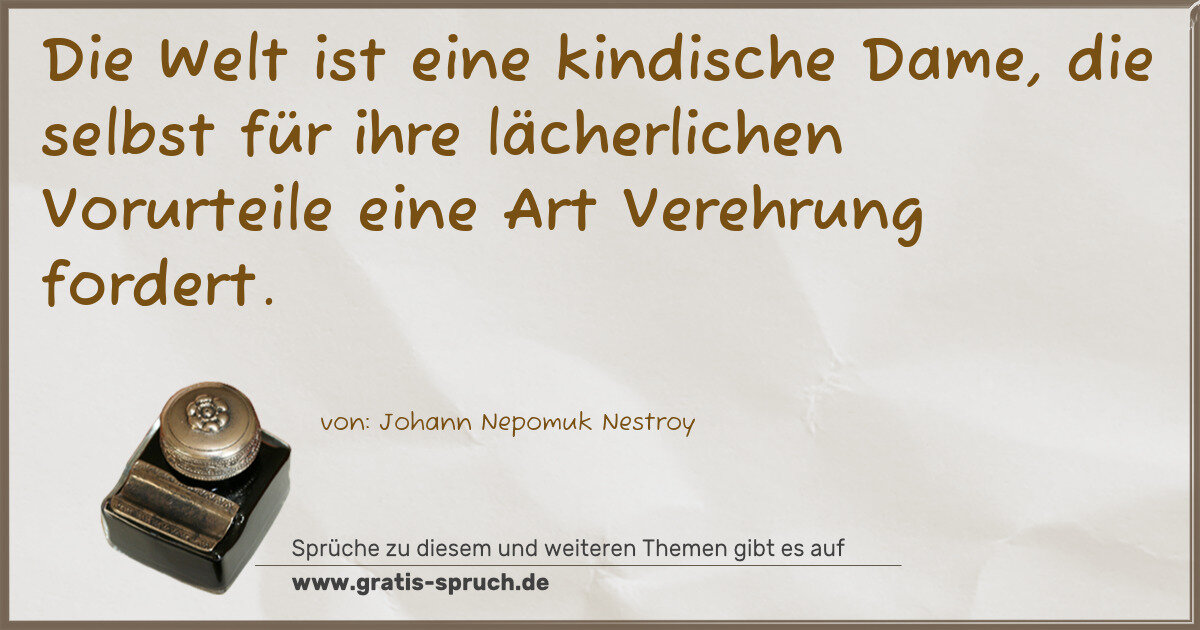 Die Welt ist eine kindische Dame, die selbst für ihre lächerlichen Vorurteile eine Art Verehrung fordert.