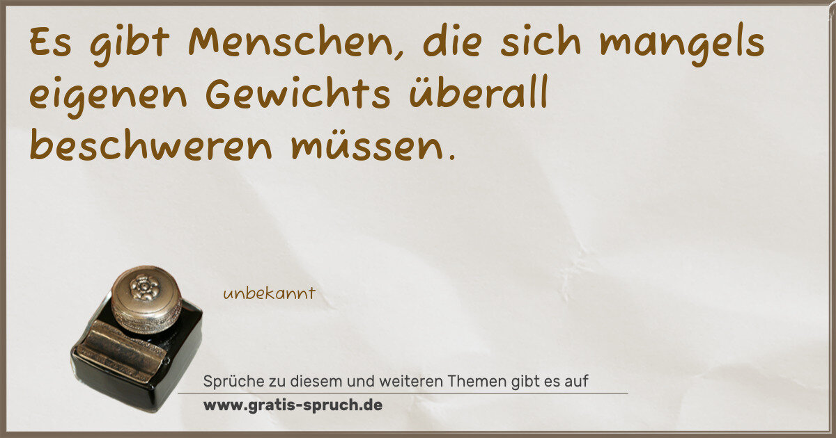 Es gibt Menschen, die sich mangels eigenen Gewichts überall beschweren müssen.
