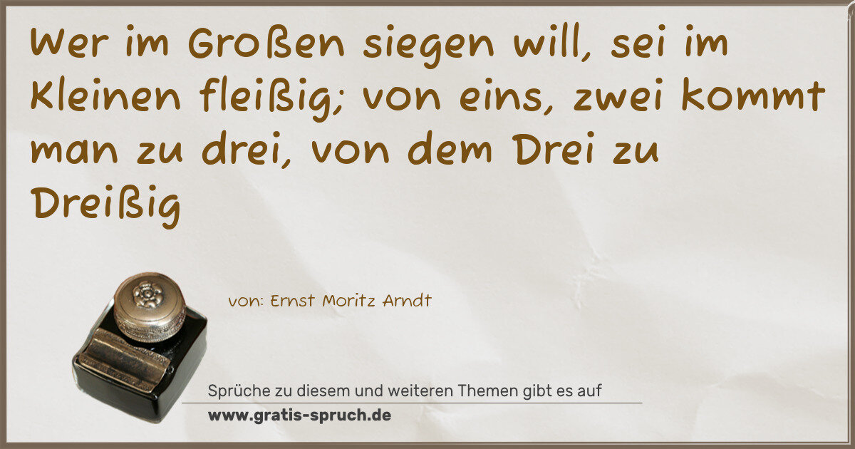 Wer im Großen siegen will, sei im Kleinen fleißig; von eins, zwei kommt man zu drei, von dem Drei zu Dreißig